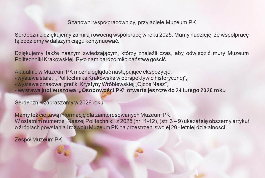 Dzień 23 lutego, to niezwykła data dla Politechniki Krakowskiej. W tym dniu dokonano pierwszego wpisu rejestracyjnego na studia, na ówczesnych Wydziałach Politechnicznych Akademii Górniczej w 1945 roku, dzisiejszej Politechnice Krakowskiej. Ta symboliczna data stała się również wyznacznikiem wernisażu jubileuszowej wystawy pt. Osobowości Politechniki Krakowskiej. Wystawa Osobowości Politechniki Krakowskiej przywołuje i upamiętnia grupę twórców: inżynierów i