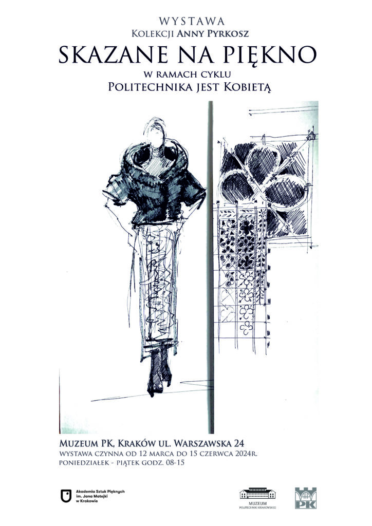 Czasowa wystawa Skazane na Piękno prezentowana w Muzeum Politechniki Krakowskiej powstała przy współpracy z Pracownią Projektowania Tkaniny i Ubioru Wydziału Architektury Wnętrz Krakowskiej Akademii Sztuk Pięknych im. Jana Matejki w Krakowie. Jest pierwszą z cyklu wystaw przygotowywanych przez Muzeum PK pt. Politechnika jest Kobietą. Inspiracją powstania przestrzennej instalacji artystycznej była niewątpliwie architektura Włoch, prezentowana po raz pierwszy we Włoskim Instytucie Kultury w Krakowie. Jej nowa odsłona w Muzeum Politechniki Krakowskiej, zaaranżowana w przestrzeni XIX – wiecznego wnętrza budynku muzeum przenosi ciężar przekazu na postać kobiety w szerokim tego pojęcia rozumieniu.