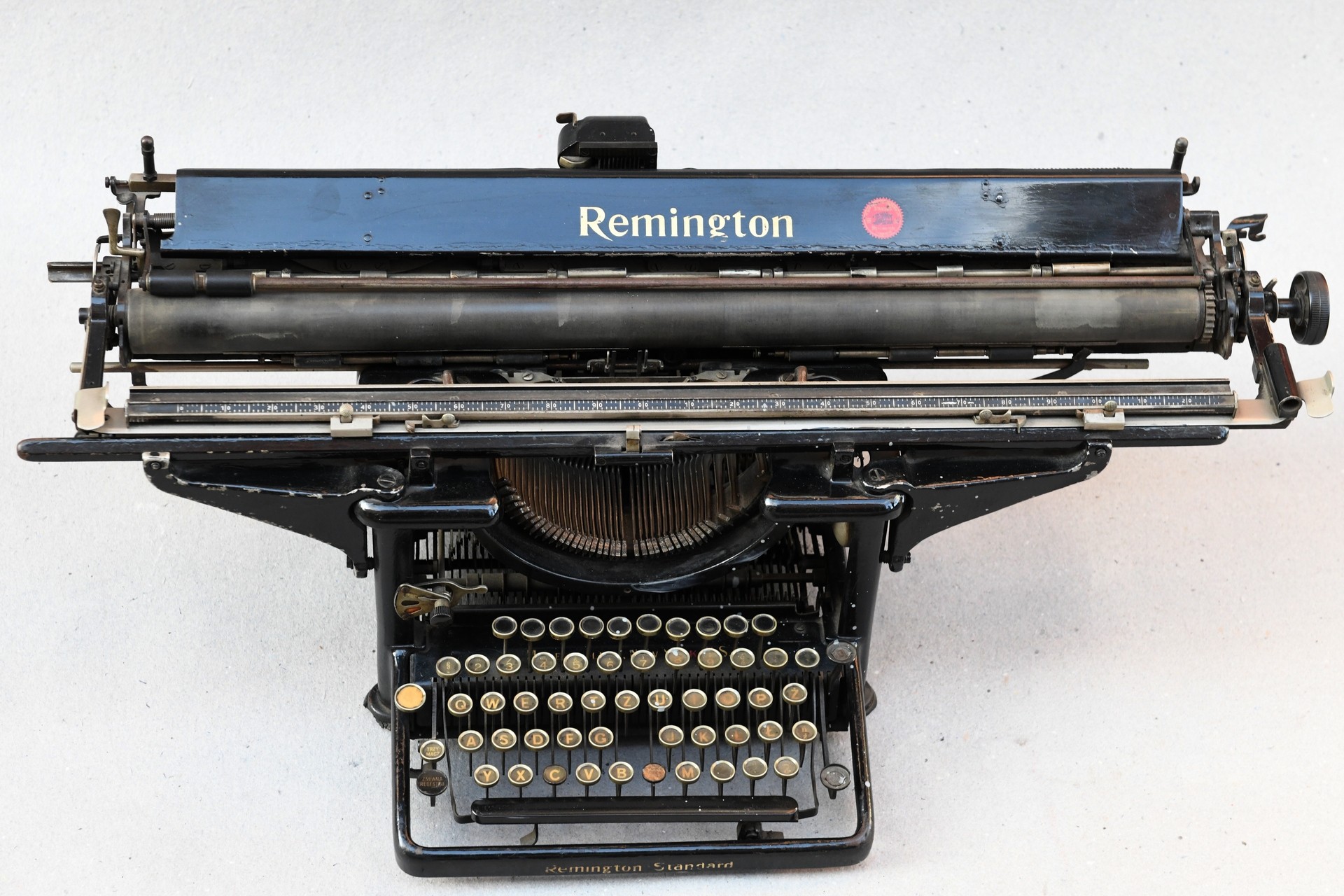 I poł. XX w. Remington Maszyna pisząca Maszyna pisząca Remington. Żelazna, lakierowana z szerokim wózkiem i klawiaturą QWERTY, przekazana przez Zakład Teorii Mechanizmów i Manipulatorów Instytutu Konstrukcji Maszyn PK. Czas powstania: pocz. XX w. Miejsce powstania: Stany Zjednoczone Materiał i technika: żelazo (odlew/kute), lakier Wymiary: wys. 26 cm x szer. 74 cm